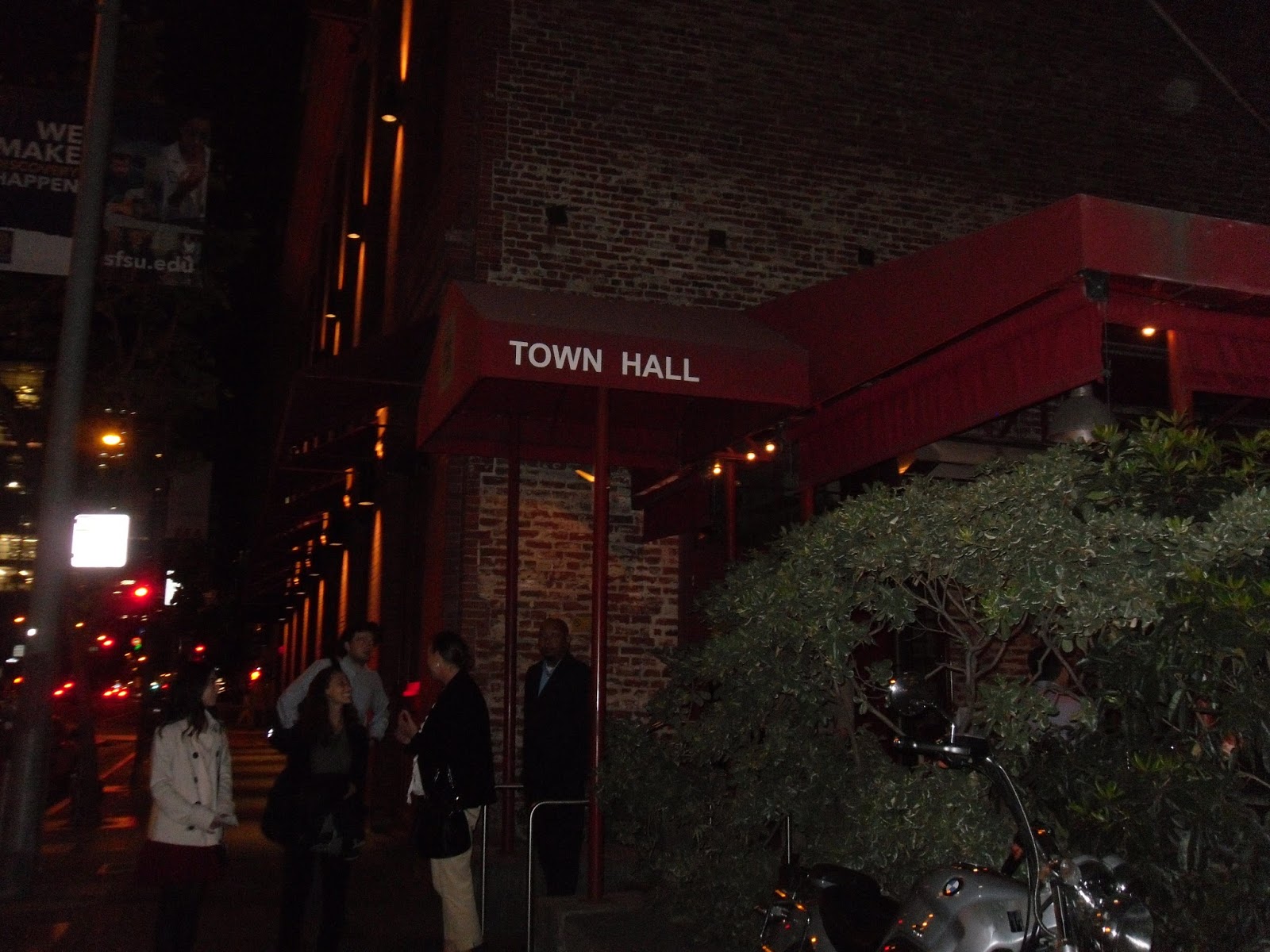 We finally got to Town Hall after walking about two blocks from the Bart station. There were some refreshing drinks that we drank and we continued to mingle in the hall. It was a good-sized room with tables set up for everyone to sit. We sat at our designated seats. I had a table with my mom, Izabel, Margaret, Erica and Charles. All of us introduced each other and I was warmly congratulated for taking part in the ILC. Izabel is a graduating senior from Kennedy High and she participated in the ILC for two years. She is attending UC Davis and I'm really happy for her accomplishments and I hope that I can return one day like her inspiring future ILCers. Margaret is a Brown alum and graduated in '84. I was seated right next to her and I really appreciated how she told me a lot about Brown's atmosphere, what to expect, and how relaxed college there felt for her. Charles Ramsey shared the story of how the Ivy League Connection was founded when he sent some students to Brown. In the early years of ILC, there wasn't an interview process. The counselor would just pick students that seem eligible to go. Erica is not an alum, but she is a teacher and I really liked hearing her thoughts on relevant matters such as kids' learning development.